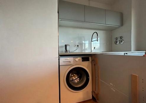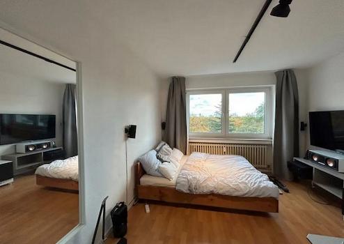 Das Wohnzimmer lädt mit gemütlicher Möblierung und offener Küche zum Verweilen ein - ideal zum Kochen und Entspannen. Das Schlafzimmer ist ruhig gelegen und funktional eingerichtet. Balkon bietet frische Luft und Ausblick. Moderner Hausmeisterdienst und Treppenhausreinigung sorgen für Sauberkeit.