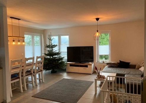 Diese gepflegte und helle Wohnung im EG rechts. mit großem Balkon zeichnet sich durch eine gehobene Ausstattung aus. Die Wohnung liegt in einer gepflegten kleinen Wohnlage (6 Parteien). Parkmöglichkeiten gibt es auf einem Stellplatz am Haus, (ggf. Garage) sowie an der wenig befahrenen Straße/Sackgasse. Die Wohnung besteht aus 3 Zimmern - große offene Wohnküche, Bäder mit Tageslicht und Badewanne - sowie einem Gäste-WC. Vom großen Balkon genießen Sie eine schöne Fernsicht mit Abendsonne. Der Garten steht jedem Mieter zur Verfügung. Ein aktueller Energieausweis liegt zur Besichtigung vor. Zur Verfügung steht Ihnen außerdem ein großer Kellerraum + Fahrradkeller.