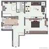 Auf der rechten Seite der Wohnung befindet sich zunächst das helle Schlafzimmer mit großen Fenstern, das ausreichend Platz für ein großes Bett und weitere Möbel bietet. Daneben liegt das großzügige Wohnzimmer, das durch seine Größe und den guten Lichteinfall vielfältige Gestaltungsmöglichkeiten bietet und sich ideal als zentraler Wohn- und Essbereich eignet.