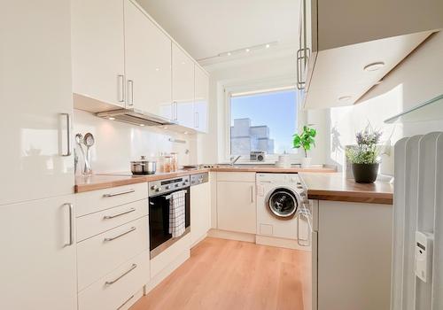 Voll ausgestattete Küche (Herd/Ofen, Kühlschrank, Geschirrspüler)