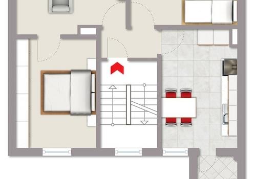 Das Dachgeschoss wurde ebenfalls zu Wohnzwecken ausgebaut, ist wegen der Deckenhöhe von unter 2m nicht in der Wohnfläche enthalten.