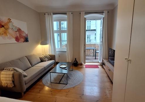 The Bornholmer Straße S-Bahn station located just a few minutes walk, as well as Cafés, supermarkets, restaurants, cinemas and everything that makes up the trendy neighborhood.