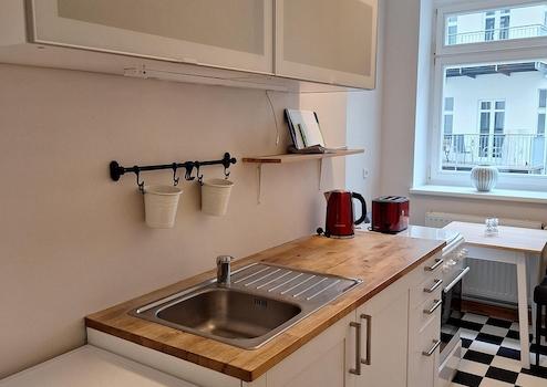 The Wilhelminian style building from the turn of the century is located in a quiet side street in the Northern Quarter of the trendy district Prenzlauer Berg. The residential complex was completely renovated in 2018 and has a very nice, well-kept courtyard.