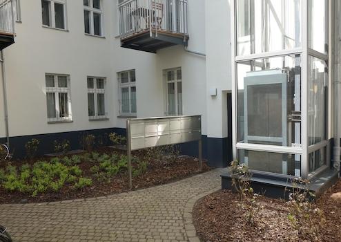 Die angebotene 1-Zimmer-Wohnung liegt im 2.OG des Hauses, im Gartenhaus.