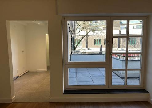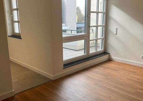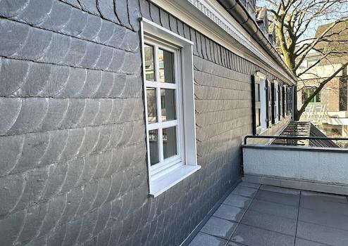Das Herzstück ist der helle Wohn- und Essbereich mit direktem Zugang zur privaten Dachterrasse. Die Küche grenzt nahtlos an und verfügt über ein charmantes Fenster– ohne Einbauküche, damit Sie Ihren individuellen Geschmack frei umsetzen können. Die Dachterrasse mit ihrer eleganten Schieferfassade verleiht dem Außenbereich ein besonderes Flair und bietet vielfältige Gestaltungsmöglichkeiten.