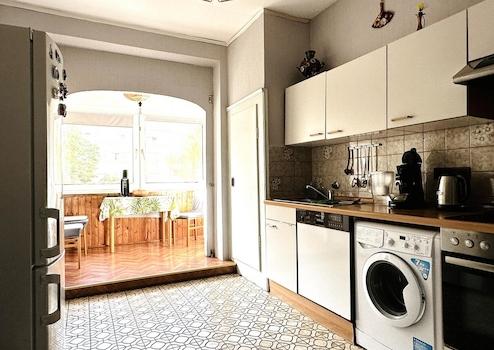 * funktionelle Küche mit Markengeräten (gehört dem Mieter)