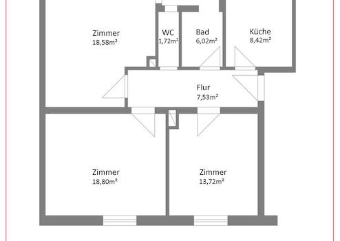 Im Hochparterre eines im Jahr 1922 solide errichteten Mehrfamilienhauses mit lediglich zehn Parteien gelegen, überzeugt diese Einheit durch einen klar strukturierten Grundriss. Ein zentraler Flur erschließt die Wohnküche, drei gut geschnittene Zimmer, das Badezimmer sowie ein separates WC. Die Räume präsentieren sich hell und freundlich und bieten vielseitige Nutzungsmöglichkeiten.