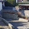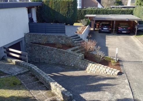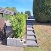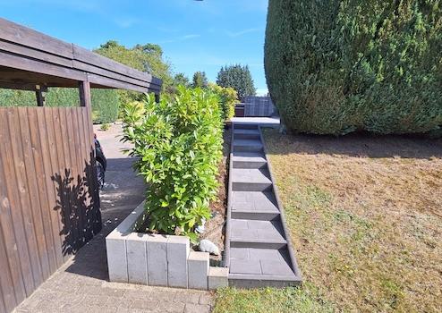 zum Garten komplett erneuert und mit L-Steinen aus Sichtbeton neu eingefasst.
