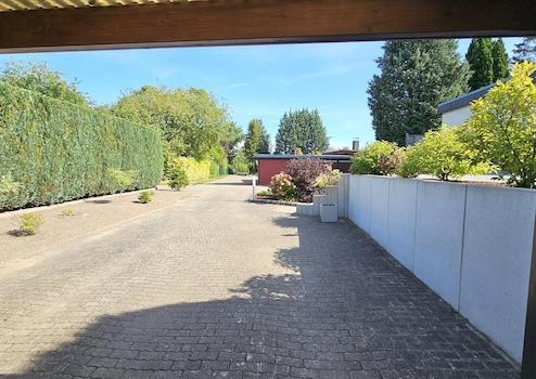 -Es gibt einen Doppelcarport mit Geräteschuppen und Anbau für die Abfallbehälter