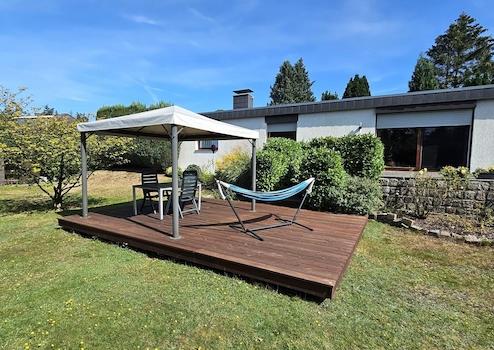 -2020 wurde die ca. 26 m² große Holzterrasse mit Treppe zur Süd-West Terrasse aufwendig umgebaut, modernisiert und mit neuen Hölzern belegt.