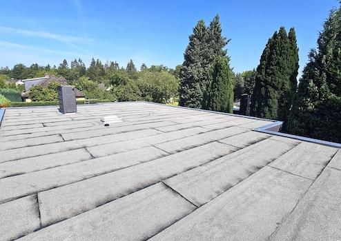 -2024 wurde das gesamte Dach auf ca. 173qm für ca. 10.500,00 EUR mit einer neuen Lage Bitumenbahnen regeneriert, genauer Umfang lt. Rechnung des Fachbetriebes.
