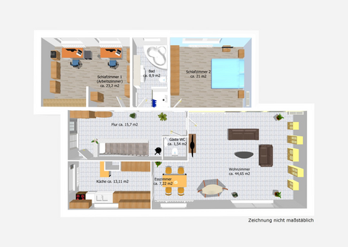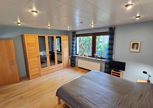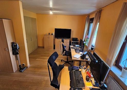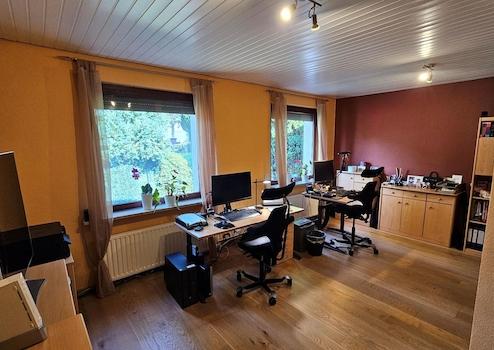 -3-Zimmer im EG, das große Schlafzimmer (ca. 23qm), zur Zeit als Arbeitszimmer genutzt, ist ohne großen Aufwand teilbar, sodass insgesamt wieder 3 Schlafzimmer entstehen könnten.