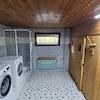 -Es gibt eine Waschküche mit Podest für Waschmaschine und Trockner sowie einer Sauna und Dusche im Keller