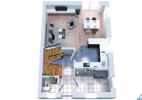 Für zusätzliche Barrierefreiheit wurden bereits vorbereitende Maßnahmen getroffen, sodass ein Treppenlift bei Bedarf problemlos nachgerüstet werden kann.