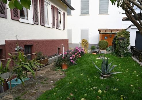 Das Anwesen besitzt einen kleinen Garten, der u. a. einen ruhigen und geschützten Rückzugsort im hinteren Bereich bietet - perfekt für laue, entspannte Sommerabende.
