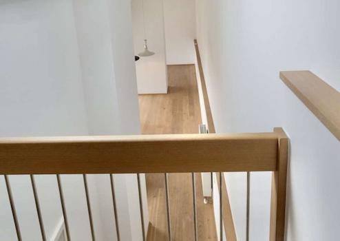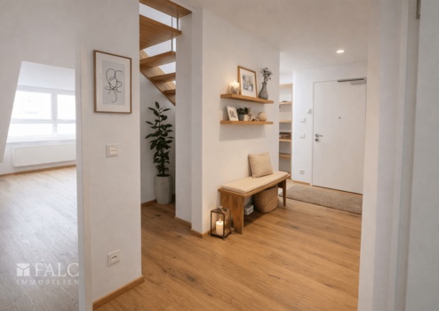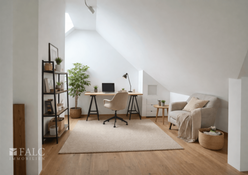 Über eine interne Treppe erreicht man die großzügige Galerieebene im Dachgeschoss, die sich ideal als Arbeitsbereich, Bibliothek oder zusätzlicher Wohnraum nutzen lässt.