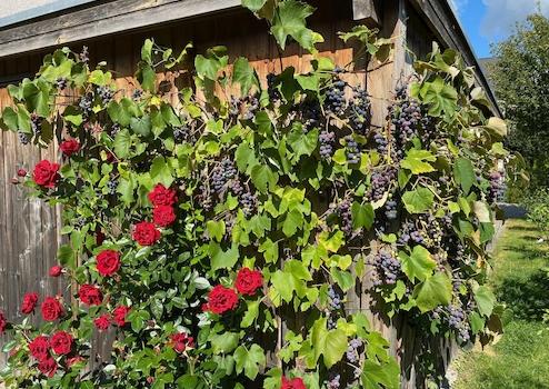 * Liebevoll angelegter Garten mit edlen Rosen, Wein, Bambus und Sichtschutz