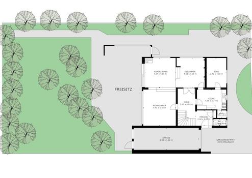 - Der angrenzende Garten mit seinen Anpflanzungen bietet effektiven Schutz vor unerwünschten Einblicken.