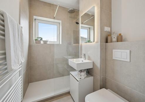 Modern gefliestes Bad mit hochwertigen Sanitärobjekten