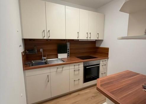 - Moderne Küchenausstattung inkl. Kochfeld, Backofen, Mikrowelle und Kühlschrank