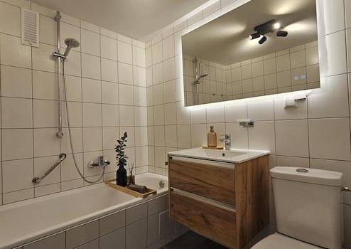 – Hochwertiger Vinylboden Eichenoptik in allen Räumen