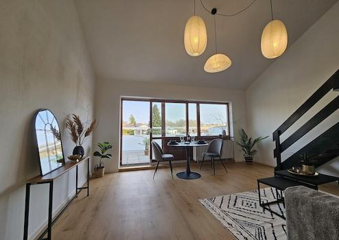 Eine elegante Galerie mit integriertem Schreibtisch bietet den perfekten Rückzugsort zum konzentrierten Arbeiten – ideal für alle, die im Homeoffice tätig sind. In allen Räumen wurde hochwertiger Vinylboden in zeitloser Eichenoptik verlegt, der für Wärme und ein harmonisches Wohnambiente sorgt.