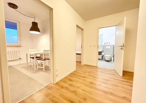 This very bright apartment is in a prime location, is being occupied for the first time after complete renovation, and offers space for a couple or a comfortable 2-person shared apartment with 2 fully equipped rooms. The apartment can be used as a couple's or student/business shared apartment.