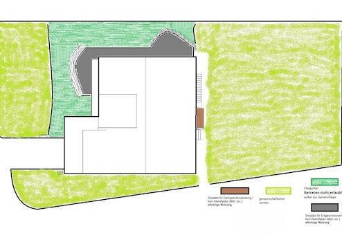 Großzügiger Wohn-, Essbereich mit offener angrenzender Küche, Schlafzimmer, Arbeitszimmer, große Diele, Tageslichtbad mit Dusche und Badewanne, französischer Balkon, eigener Gartensitzplatz. Eigener Nebenraum im UG, gemeinschaftlicher Garten mit Gartenhaus (Unterstellmöglichkeiten für Fahrräder).