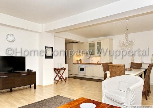 Wohnen mit allem Komfort! Der große Wohnessbereich ist mit einer gemütlichen Sitzecke, LCD-TV mit digitalen Kabelempfang und einem Esstisch für 6 Personen ausgestattet. Das geräumige Schlafzimmer ist mit einem 2x2 Meter Doppelbett, einem großen Keiderschrank und einem Schreibtisch möbliert. Die hochwertige, offene Einbauküche ist mit Spülmaschine, Cerankochzone, Backofen, Kaffeemaschine, Toaster und einer Grundausstattung an Geschirr bestückt. Das Bad bietet Ihnen Wellness pur! Neben der ebenerdigen Dusche können Sie in der freistehenden Wanne den Arbeitstag ausklingen lassen. Vom Wohnbereich gelangt man auf die Terrasse im rückwärtigen Garten mit einer Sitzmöglichkeit, eine kleine Idylle inmitten der Stadt. Direkt am Eingang befindet sich das Gäste-WC. Eine Waschmaschine komplettiert die hochwertige Ausstattung, sie befindet sich im Keller.