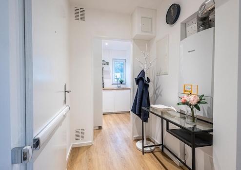 Die sehr helle Wohnung mit Tageslichtbad und Tageslichtküche ist bequem in der ersten Etage eines gepflegten 7-Parteien-Hauses erreichbar. Die Wohnung ist neu renoviert (Elektrik, Böden, Decken, Bad und Leitungen, Küche). Das Haus ist vollständig unterkellert und der Kellerraum bietet zusätzlichen Stauraum für alles, was sich ansammelt, oder auch für wertvollere Gegenstände wie Fahrräder. Auf dem Dachboden gibt es ebenfalls einen abschließbaren Raum für jede Partei sowie einen allgemeinen Bereich der z.B. zum Aufhängen der Wäsche genutzt werden kann.