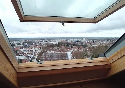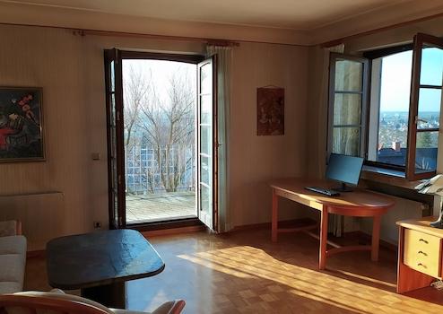Das Haus liegt an einem Südwesthang und bietet von seinen Terrassen einen einzigartigen Panorama-Weitblick auf die Stadt Weinheim (Schloss) und die Rheinebene.