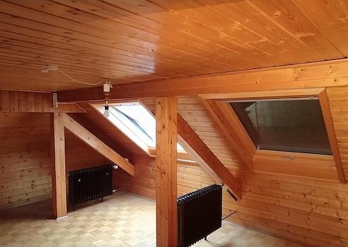 Das Dachgeschoss wurde ausgebaut. Dort befinden sich zwei Jugendzimmer und ein kleines Bad (Dusche, WC, Waschbecken).