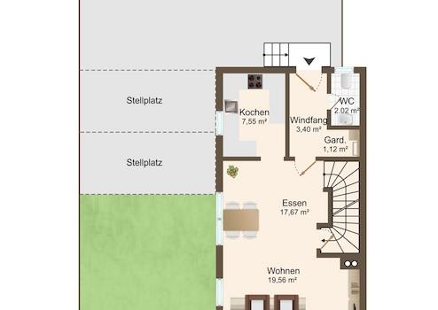 - Bodenbeläge: Fliesen, Designbelag, Teppich, Juramarmor (Treppe)