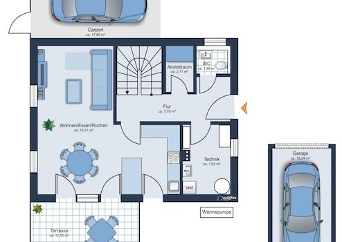 - 1 Carport und 1 Einzelgarage
