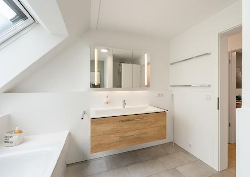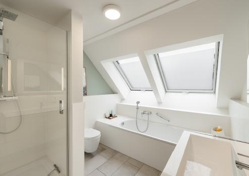 Zwei Schlafzimmer, ein lichtdurchflutetes Badezimmer mit Dachflächenfenster sowie ein separates Duschbad sorgen für höchsten Wohnkomfort und durchdachte Funktionalität auf dieser Ebene.