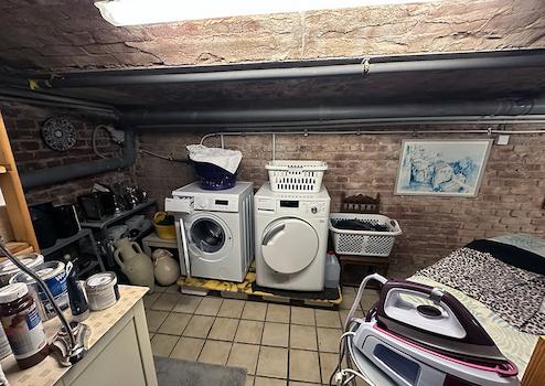 Darüber hinaus bietet der Keller praktische Stau- und Nutzflächen. Ihre Waschmaschine können Sie hier auch unterbringen.