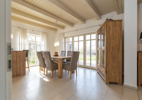 - Holzbalkendecken und Echtholz-Parkett – weil man sich schließlich auch im Urlaub gut fühlen will