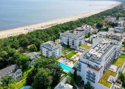 Eingebettet in einen 16.000 m² großen Park mit altem Baumbestand, bietet dieses Grandhotel nicht nur höchsten Hotelkomfort, sondern auch die seltene Gelegenheit, Eigentum in einer der exklusivsten Lagen der Ostseeküste zu erwerben.