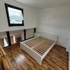 Eine Einbauküche (Cerankochfeld, Kühlschrank, Gefrierschrank, Backofen, Abzugshaube), Ecksofa, Couchtisch, TV-Kommode, Bett und Kleiderschrank gehören ebenfalls zur Ausstattung (Alter jeweils ca. 1 Jahr).