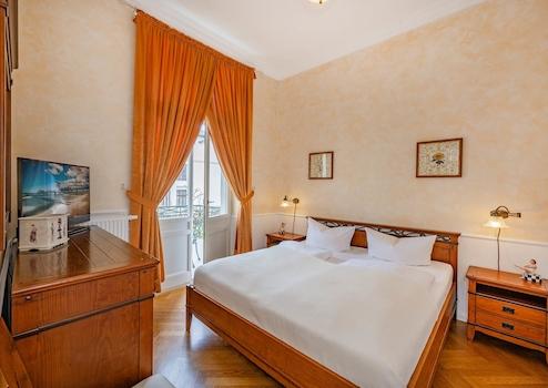 Du betrittst die Beletage und spürst sofort den Charme vergangener Zeiten – hohe Decken, ein Jugendstil-Kronleuchter über deiner Sofa-Lounge und ein Flatscreen-TV.