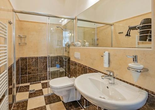 Dein Spa-Moment: Das Bad verwöhnt dich mit ebenerdiger Dusche, Fußbodenheizung und warmen Handtüchern – Komfort pur.