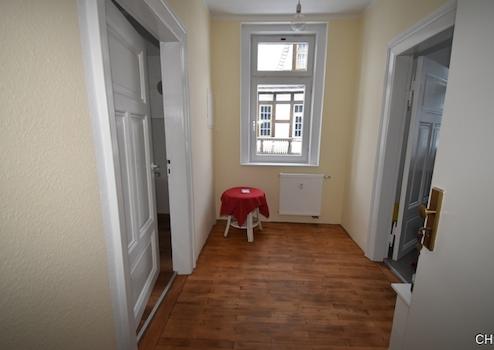 Hervorheben möchten wir hier auf jeden Fall, dass die schönen alten Türen mit Facetten liebevoll aufgearbeitet wurden. Im Dielenbereich befindet sich eine Tür mit tollem farblichen Glaseinsatz und gibt damit der Wohnung einen besonderen Charme.