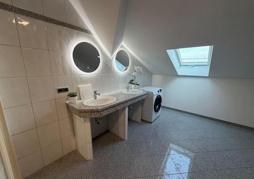 Sanitär: 2 voll ausgestattete Bäder (Dusche/Wanne), zusätzlich ein Gäste-WC.