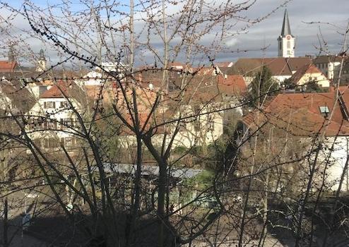 Über das außen angebaute Treppenhaus und einen externen Laubengang gelangt man in sein eigenes Reich, von dem aus man einen herrlichen Blick über die Dächer von Wiesloch hat.