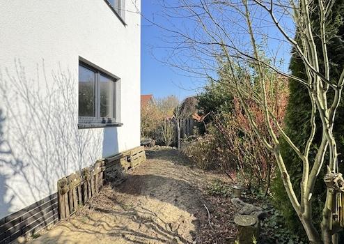 Der Garten ist pflegeleicht gestaltet und bietet Raum zur Erholung. Ein Teilkeller, ein Dachboden sowie eine großzügige Garage mit zusätzlichem Schuppen runden das Angebot ab.