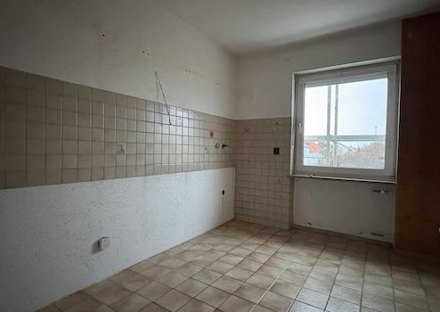 Direkt angrenzend befindet sich die Küche, die aktuell funktional ausgestattet ist und sich ideal nach eigenen Wünschen neugestalten lässt.