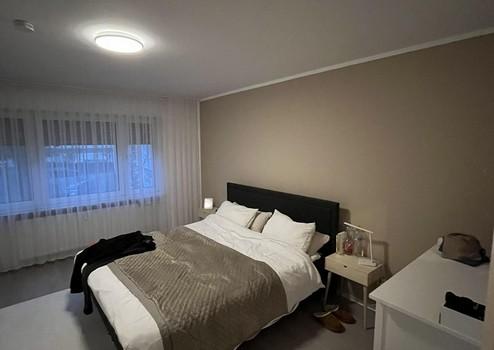 Am Ende des Flurs liegt das ruhig gelegene Schlafzimmer, das genügend Platz für ein Bett sowie für Kleiderschränke und Kommoden bietet.