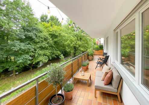 Großer Balkon (ca. 21 m²) mit herrlichem Blick ins Grüne