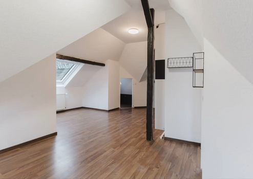 Suchen Sie eine Wohnung mit Charakter und perfekter Anbindung? Diese ca. 56 m² große Dachgeschosswohnung im 3. Obergeschoss eines gepflegten Mehrfamilienhauses wird Sie begeistern. Freiliegende Holzbalken und eine offene Raumwirkung schaffen ein gemütliches und charakterstarkes Ambiente, in dem man sich sofort zu Hause fühlt.Die Wohnung wurde erst 2025 modernisiert und befindet sich in einem teilsanierten, bezugsfertigen Zustand.