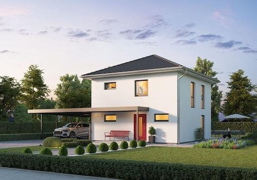 Der repräsentative Doppelhausentwurf mit Satteldach ist mit einem Zwerchgiebel mit Flachdach und einem Erker mit Flachdach geplant und ist deshalb sehr besonders. Die Küche liegt an der Frontseite des Hauses, bietet ...